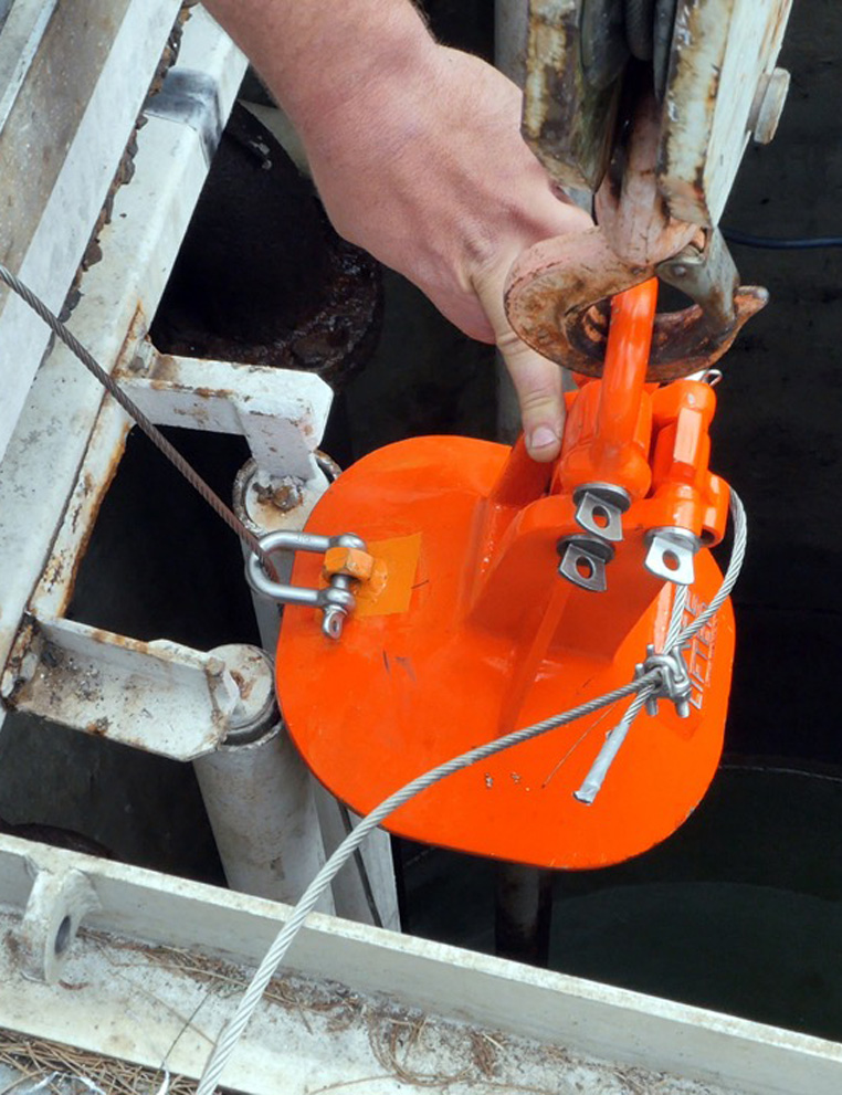 In the case of flooded or deep wells with no visibility, the Lifter can be attached to a guide wire by a shackle that runs down to a guide hole incorporated into the Link on top of the pump, guiding the Lifter effortlessly to the Link, making the SAFELIFTER 100% effective in all situations.